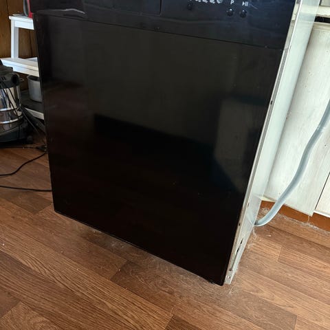Invändigt finns två korgar för tallrikar, glas och köksredskap samt bestickkorg i nedre korgen. Diskmaskinen ansluts med standard avloppsslang och vattenanslutning enligt bild.
