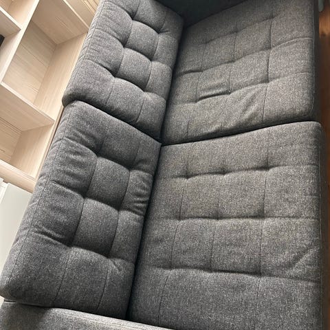 Säljer en IKEA Landskrona 2-sits soffa i mörkgrått tyg. Drygt 1 år gammal och sparsamt använd i rökfri studio. Inga synliga fel och det syns knappt att den har använts.