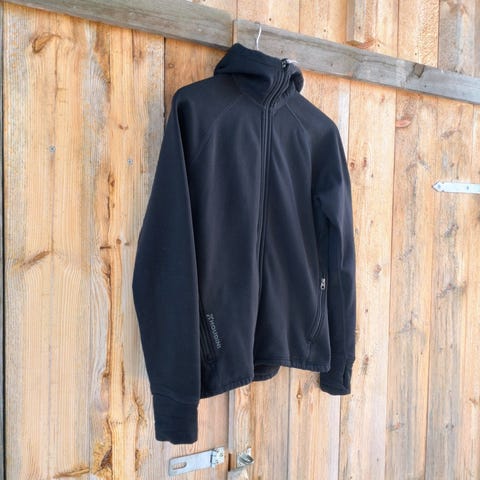 Houdini jacka för herr i storlek M. Jackan är grå och tillverkad i polyester. Modellen har fast huva, hel dragkedja framtill med skyddande slå samt flera fickor framtill. Insidan är fodrad i ett slätt material för ökad komfort och rörelsefrihet. Passar som ytterjacka för utomhusbruk och vardagsaktiviteter.