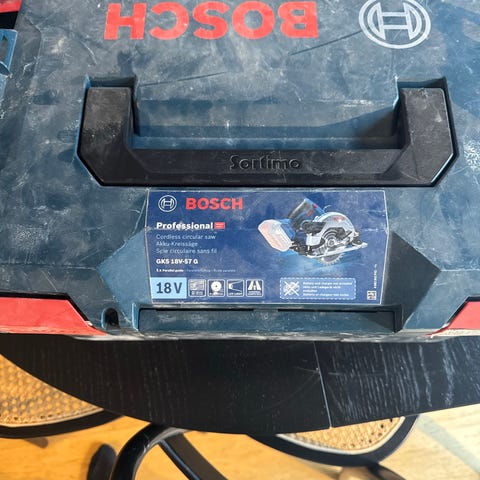Bosch GSA 18V-32 tigersåg 18V i plastväska. Batteridriven tigersåg för kapning och rivningsarbeten i trä, metall och plast. Levereras i original Bosch-förvaringsväska. Modellen ingår i Boschs 18V-system. Övriga specifikationer och medföljande tillbehör framgår inte tydligt av bilderna.