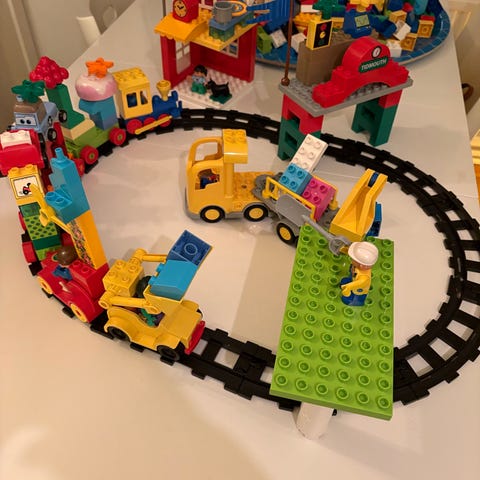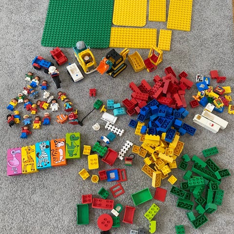 Lego Duplo klossar och tågdelar blandade färger plast