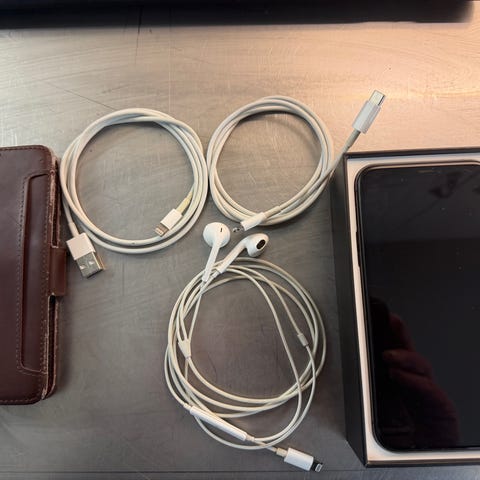 Efter 5 års felfri användning har min fru uppgraderat till en ny telefon. Telefonen har alltid haft skärmskydd och skal på från dag ett. Telefonen har fortfarande ett skärmskydd som visar repor etc., men undersidan av skärmen är i toppskick. Det kan tas bort av den nya köparen. Ett skyddande skal och 1 x original Apple-laddningskabel och 1 x eftermarknads laddningskabel ingår.