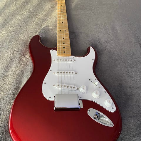 Några sprickor i lack vid halsficka och några märken baksidan av hals.Har bytt mickar till fender standard(låter bra).Satt pris gäller.