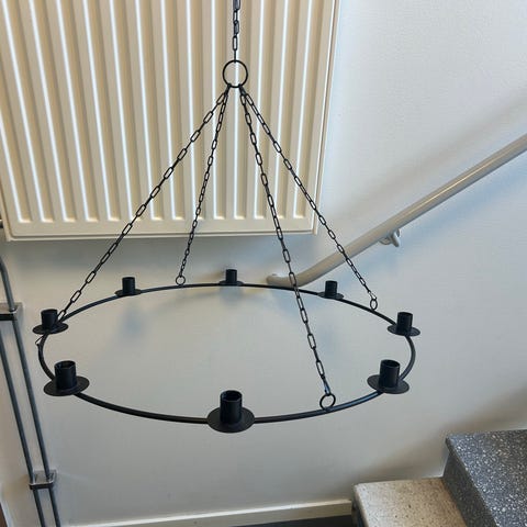En superfin och rustik ljuskrona från Leksandssmide, i rundjärn. Diameter ca 30 cm. Inkl. länkar och ljusmanschetter.