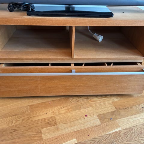 TV-möbel av okänt träslag. Massivt trä.