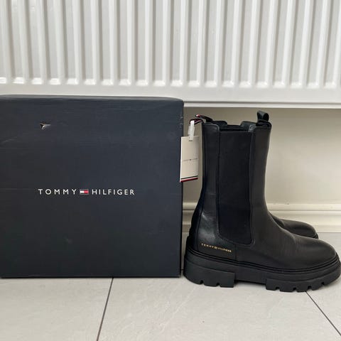 Tommy Hilfiger ankelboots i storlek 39. Modellen är i blå mocka med resårpartier på sidorna och dragkedja för enklare på- och avtagning. Diskret Tommy Hilfiger-logotyp på sidan och vid hälen. Passar för vardagsbruk under svalare årstider.
