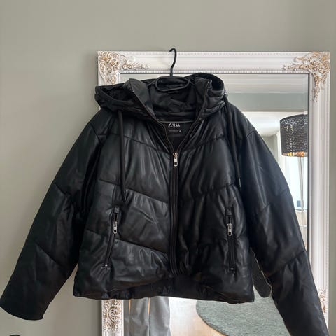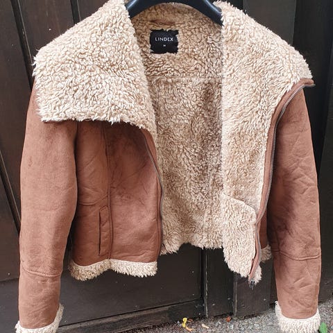 Zara vinterjacka för dam i storlek XS, passar även en S. Jackan är brun och med mocka imitation och mjuk, teddyfodrad insida. Modellen har snedställd dragkedja framtill, flera dragkedjefickor och avtagbart eller justerbart bälte i nederkant. Passar som varm ytterjacka under kallare väder.