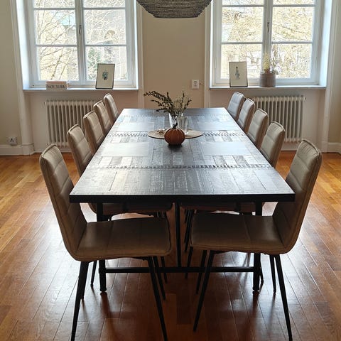 6 stolar och två iläggsskivor