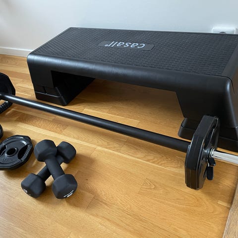 Reebok Studio stepbräda, matta och skivstång med vikter