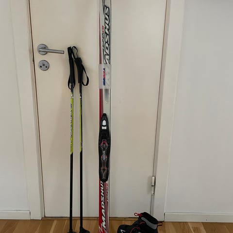 Pjäxorna är av märket Atomic storlek EU 44. Skidorna är ca 200cm och stavarna 150. Anpassade för man på 185cm. Sparsamt använda. Finns i Torsvik, Lidingö.