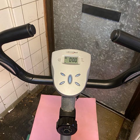 Säljer en Epsilon motionscykel, hopfällbar modell i svart. Utrustad med digital display som visar grundläggande träningsdata som puls, tid och annat. Pedaler med remmar och justerbart säte för anpassning till längd. Lämplig för inomhusträning och konditionsträning i hemmet. Perfekt att förvara i en garderob eller liknande.