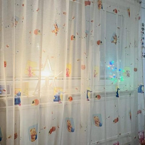 2 paket gardiner oanvända, 2-pack, röda och mönstrade