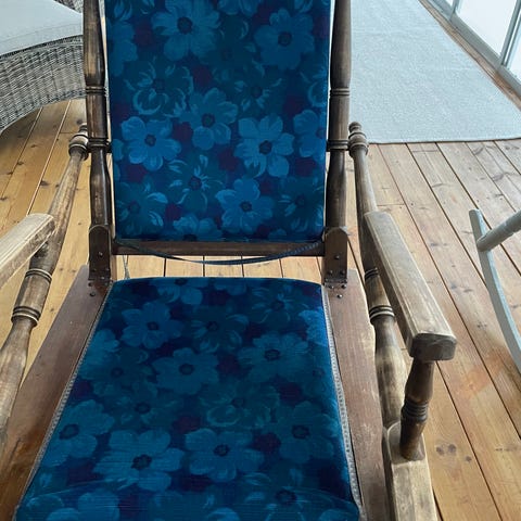 Tygklädnad borttagen. Lös vit filt i nuläget.