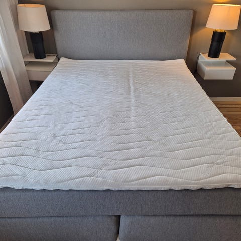 Minns inte exakt när den köptes, men gissar det var för drygt ett år sedan. Användes max en vecka (med madrasskydd) innan den rullades ihop och ställdes in i garderoben, pga att den inte passade med de kvalsterskydd den var tänkt användas tillsammans med. Så skicket är mer eller mindre som nytt, ser inga tecken på användning.
