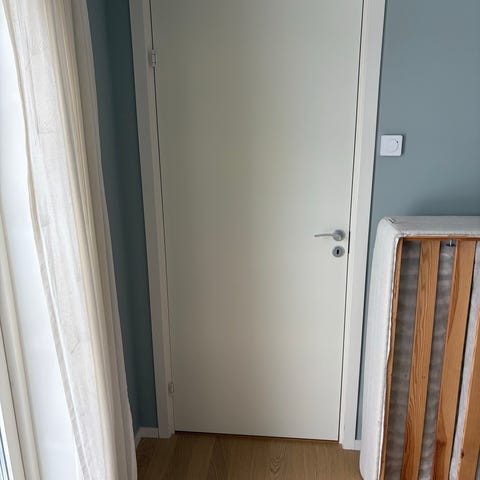 En av dörrarna har låsvred för badrum/toalett.