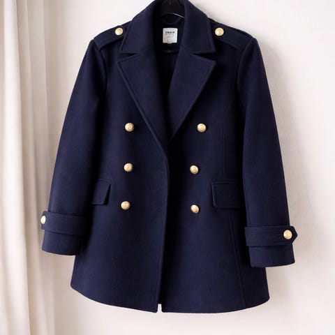 Elegant mörkblå kavaj med dubbelknäppning och dekorativa guldknappar. Kavajen har en figurnära passform och fickor framtill. Ärmsluten är prydda med tre mindre guldknappar. En klassisk och stilren kavaj som passar för många tillfällen. Helfordrad.