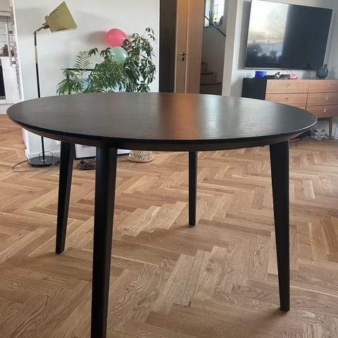 Fin soffbord i bra skick, ekfärgad med 4 svarta ben.