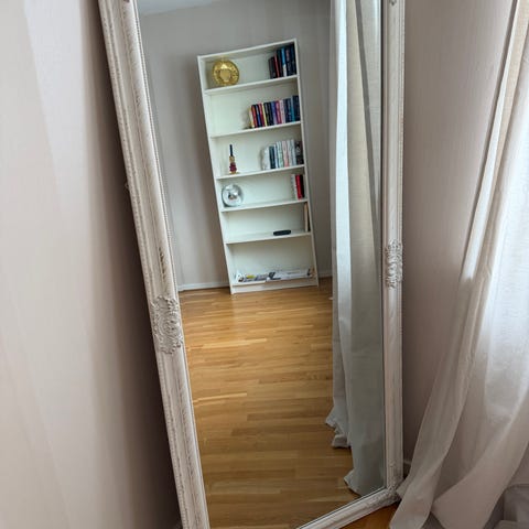 Selling a white full-body mirror from IKEA. Measures: 40x150cm. Pick-up only, pay with Swish.