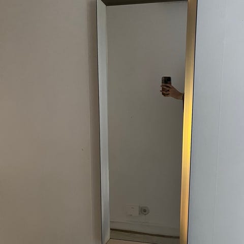 H&M Home spegel i rektangulär modell. Stor väggspegel med enkel, minimalistisk design utan synlig ram. Passar exempelvis i vardagsrum, sovrum eller hall för att ge rymd och reflektion i rummet.