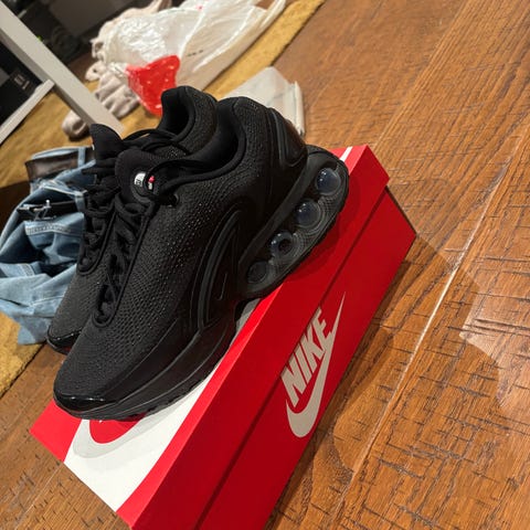 Nike Air Max Sunder sneakers i storlek 44. Skorna har ovandel i textil och syntet i svart och grått med blå detaljer. Mellansulan har synliga Air Max-enheter för dämpning. Yttersula i gummi. Flerfärgat foder runt ankelpartiet. Passar som vardagssko eller fritidssko.