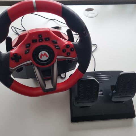 Ratt och pedaler för att förhöja känslan av att tävla i Mario Kart.