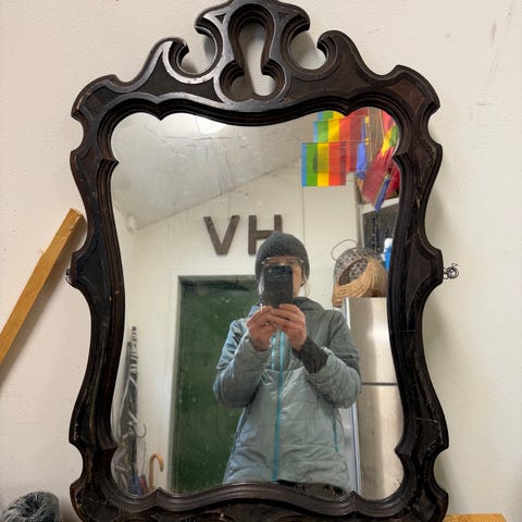 Otroligt vacker och detaljrik spegel med snidade dekorationer och en elegant svart finish. Den ger ett lyxigt, nÀstan antikt uttryck och blir verkligen ett statement i rummet.