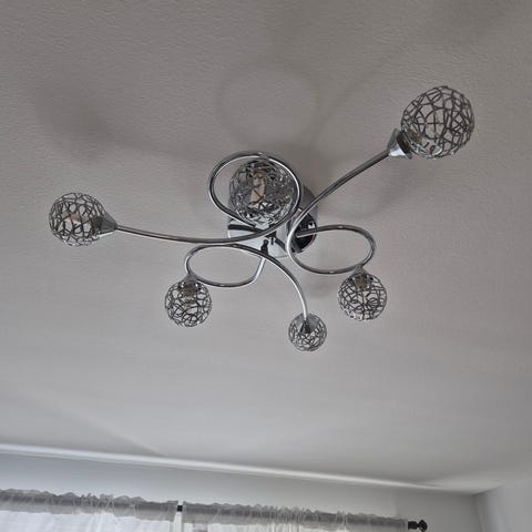 Snygg och modern taklampa i krom med tre dekorativa kristallkupor. Ger ett fint ljus och passar perfekt i hall, vardagsrum eller sovrum.