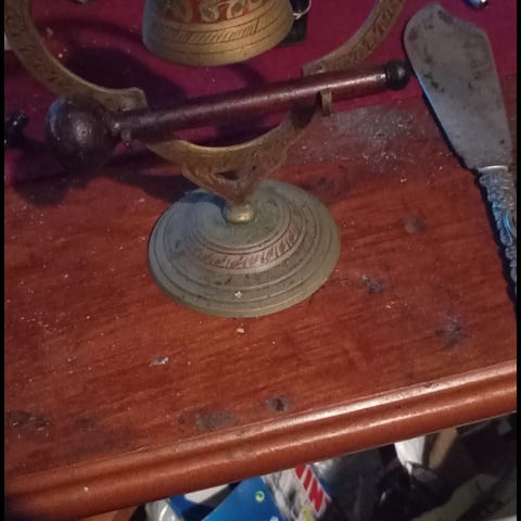 Brun glaslampa med vitt glas innanför. En liten glasbit saknas, ej tydligt för ögat, se bild.