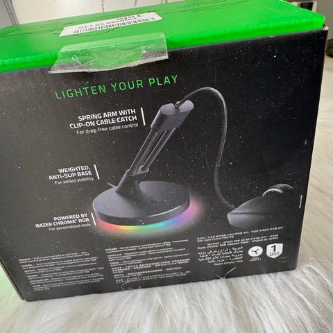 LED bordslampa med genomskinlig akrylplatta och svart rund fot. Motivet föreställer ett par hörlurar med texten "CAN'T HEAR YOU I'M GAMING". Lampan lyser i flera olika färger, och drivs via kabelanslutning (USB). Passar som dekorationsbelysning i spelhörna, sovrum eller på skrivbord.