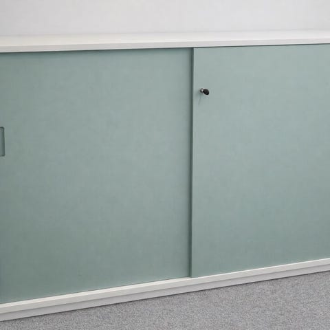 Fint skåp med skjutdörrar. Använt till hemmakontoret. Mått bxhxdj 160x125x43