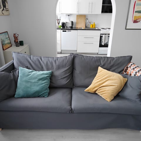 Tyget är lite slitet i sitsen, men går att lägga en filt eller liknande.