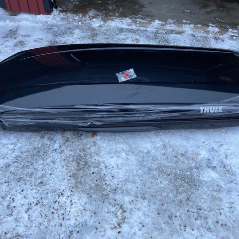 Säljer en stilren och rymlig takbox från Thule i svart högblank finish. Perfekt för skidresan, semestern eller när du behöver extra lastutrymme. Ca 85cm bred.