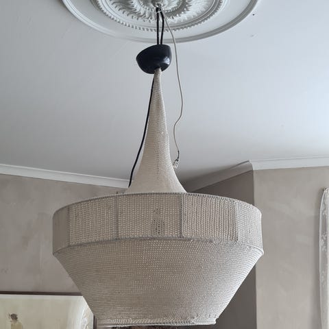 Stor takrosett som suttit uppe men varligt nedtagen, endast lite ojämn i ytterkant, annars i fint skick, grundmålad.