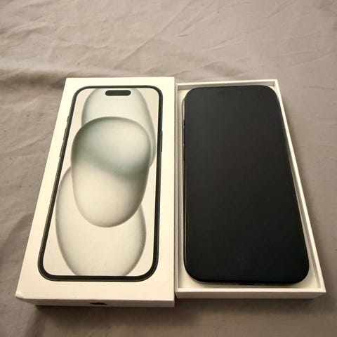 Apple iPhone 15 Pro mobiltelefon med 128 GB intern lagring. Modellen har svart baksida och skärm med helfrontsglas. Lämplig för appar, surf, foto och video samt vardaglig användning. Levereras i originalkartong enligt bild.