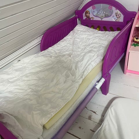 Jollyroom juniorsäng med husformad ram. Sängen har en låg ligghöjd anpassad för barn och en stabil ram i grått utförande. Passar som övergångssäng mellan spjälsäng och vanlig säng och kan placeras mot vägg eller fristående i barnrummet. Madrassstorlek och material på ram anges inte, men sängen är avsedd för junior-/barnmadrass i standardmått för juniorsängar.