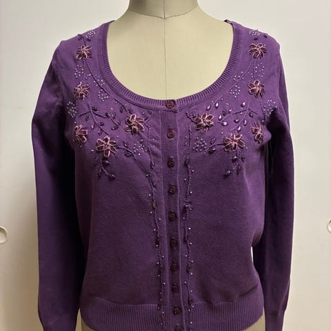 Stickad kofta, rosa, storlek L. Ny.