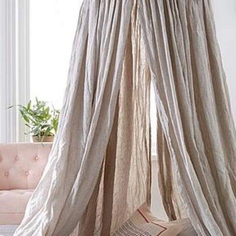 Sänghimmel grått linnetyg från NG Baby i gott skick. Vi har haft en ljusslinga i toppen som gjort det extra mysigt, följer med om man önskar.