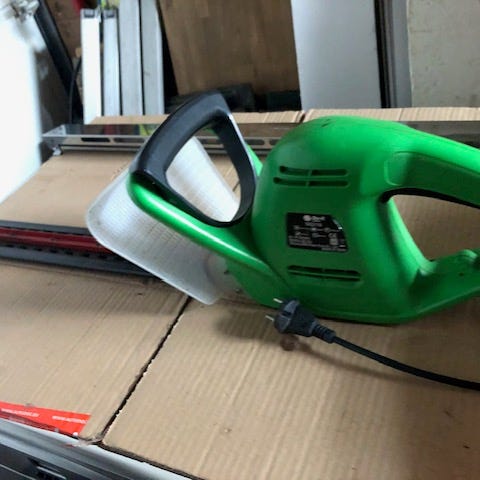 Grizzly GTI 600 elektrisk häcksax i grön färg. Modellen är avsedd för trimning och klippning av häckar och buskar i trädgård. Häcksaxen har ett framhandtag med skydd samt svärd med tandad klinga för klippning av grenar. Ansluts med elkabel till vägguttag. Lämplig för vanlig trädgårdsskötsel där man behöver forma eller underhålla häckar och buskage.
