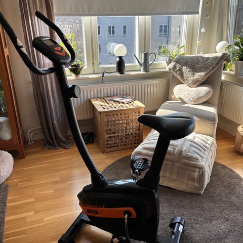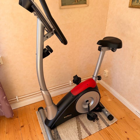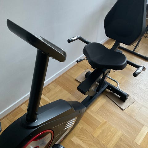 Christopeit AL 2 motionscykel för inomhusträning med digital display på styret och justerbart säte. Utrustad med pedaler med remmar och inkapslat svänghjul.