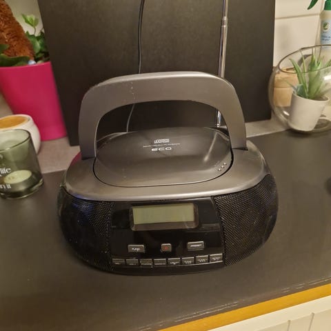 KLIM Boombox E1 är en bärbar CD-spelare med radio och USB-ingång. Den har stereoljud och är designad för att vara enkel att transportera.