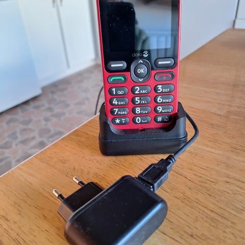 Laddare, laddställ och oanvänd hörsnäcka följer med.