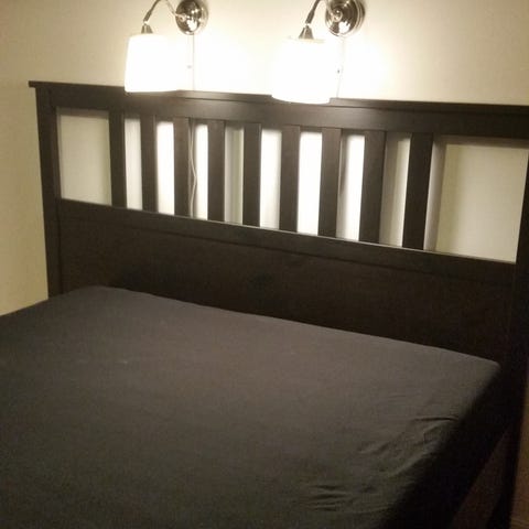 Den är helt ok skick, säljes utan madrass.