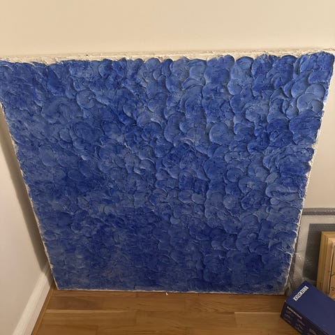 Abstrakt tavla med tvådelad färgindelning i grått och vitt. Motivet har en tydlig horisontell övergång mellan de två färgfälten. Passar som väggdekoration i exempelvis vardagsrum, sovrum eller hall. Målad på större duk eller skiva, lämplig att luta mot vägg eller hängas upp med passande upphängning.