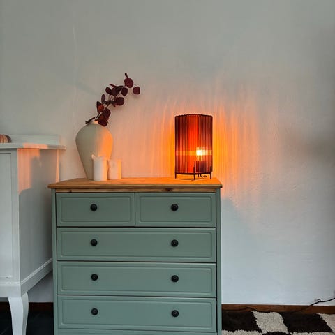 IKEA byrå i grå träfinish. Byrån har två mindre lådor överst och flera större lådor under för förvaring av kläder, textilier eller andra saker. Klassisk modell med runda knoppar på lådorna och en rak ovansida som kan användas för att ställa dekorationer eller förvaring. Passar i sovrum, hall eller vardagsrum.