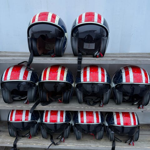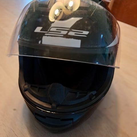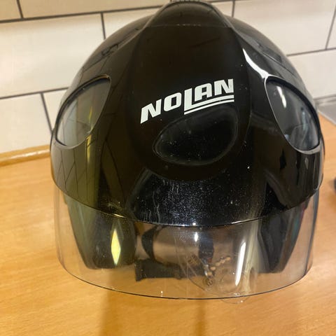 Från vänster Bell moto5 mcgrath replik nån liten skada 500 kr storlek ca 56-57 mitten okänd med nedfällbart visir storlek xxl 100 kr till höger acerbis med mörkt nedfällbart visir nyskick 500 kr