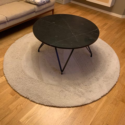 Rund matta från Mio i en gråbeige nyans. Mattan har lång lugg och ger ett mjukt intryck. 150 cm. Fräsch, mycket litet använd. Nypris 1750kr.