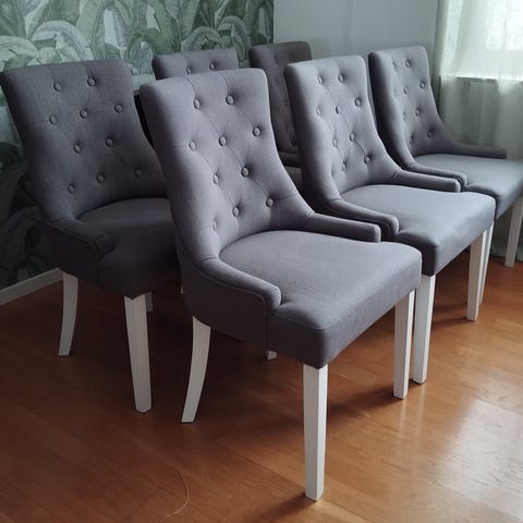 Stolorna är använd så tyget är inte helt rent, det finns små fläck.