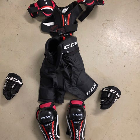 Bauer Youth ishockeyskydd set i storlek Yth L (för barn ca 7–9 år).