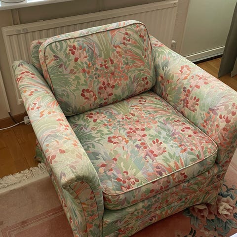 Säljer en klassisk öronlappsfåtölj från 50-talet, kan vara en Bröderna Andersson, i behov av kärlek och omklädnad.