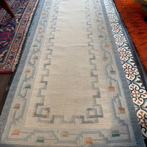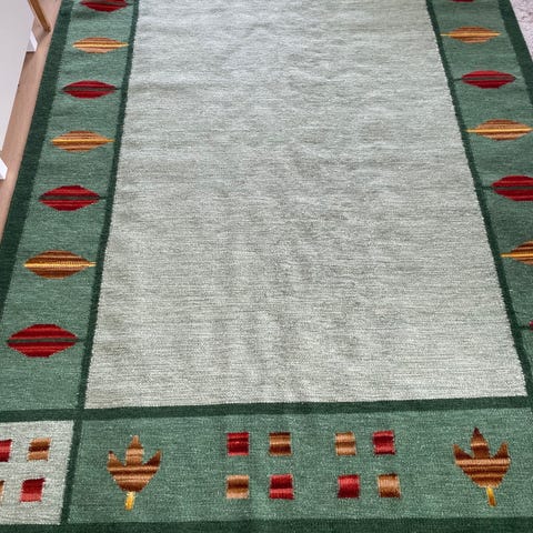 Röllekan matta i fint skick, har dock en mindre fläck men borde gå att tvätta bort. 138x184 cm